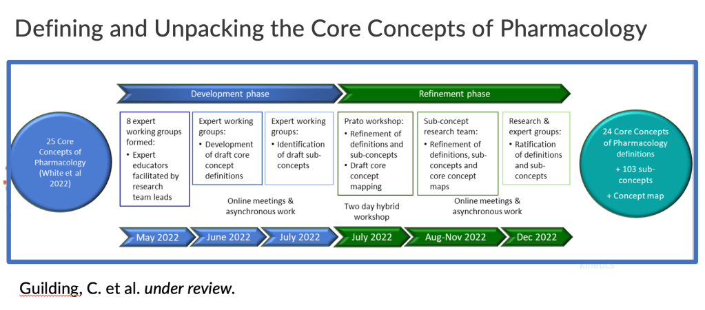 Launched in 2021, this ambitious project aims to transform pharmacology education by helping students and educators to focus on the knowledge that matters. We have already achieved our first aim – to produce a consensus list of core concepts of pharmacology education. We are now working together to develop approaches to teaching and assessing these concepts within transformative concept-based curricula.